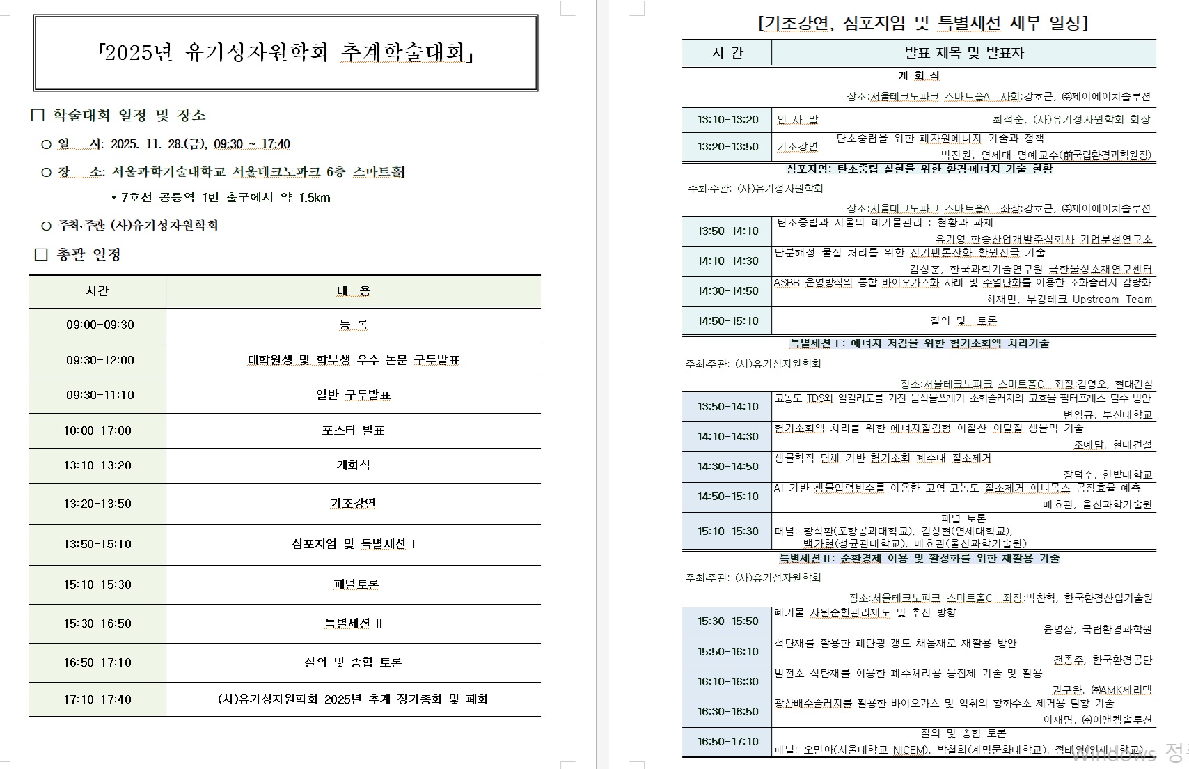 유기성자원학회는 서비스 향상을 위해서 귀하의 개인정보를 외부에 위탁하여 처리할 수 있습니다.